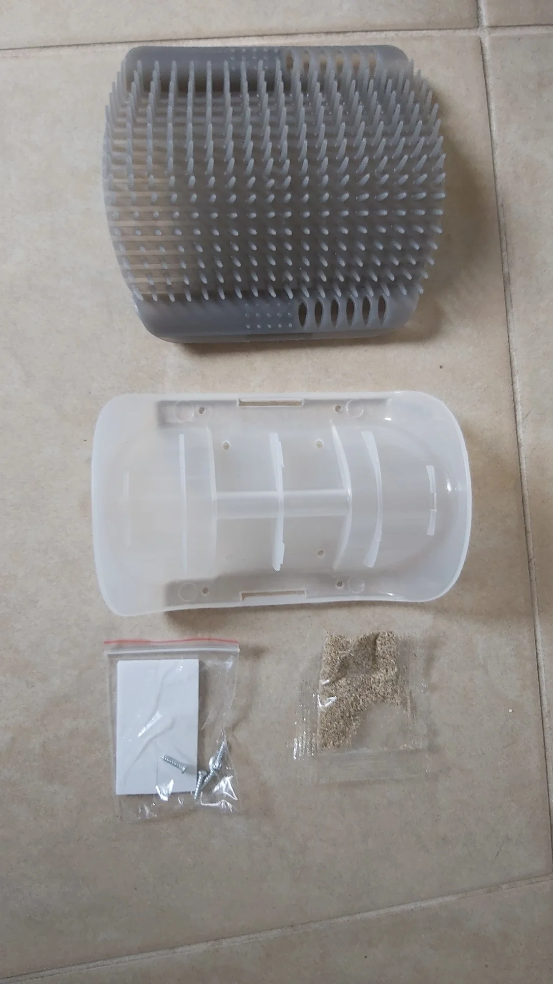 Items arrived within the specified time period. Packing was in a clear plastic bag, sufficient for item. Looks like the advertisement and appears to be made of reasonably sturdy plastic. Came with screws and double sided tape. Will wait to see what the animals think